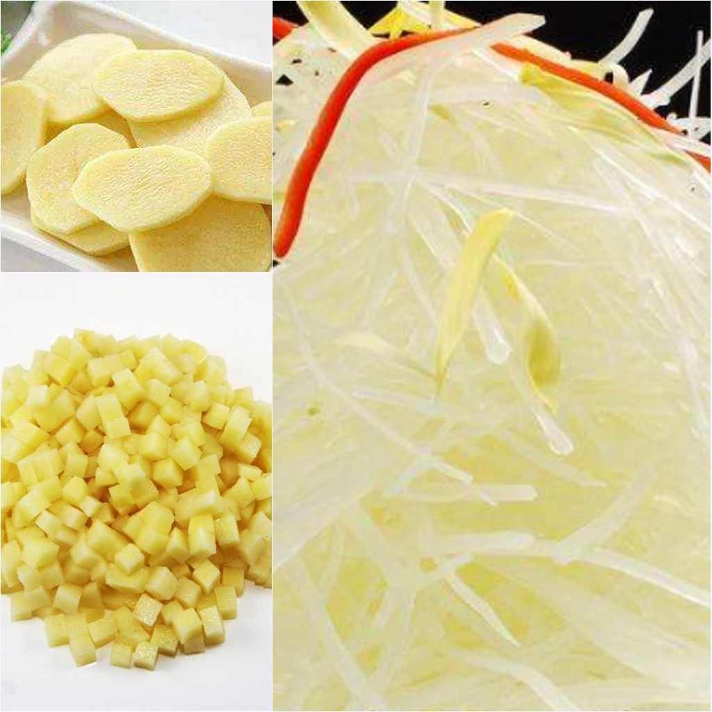 This machine can cut the vegetables into shreds,slice and cube etc by changing diffrernt moulds.
